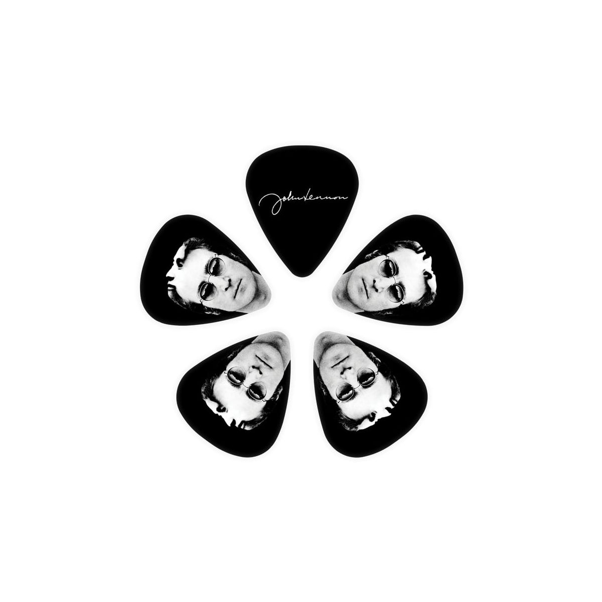 На одной стороне медиатора — уникальный портрет с обложки альбома, а на другой — узнаваемая подпись Джона.