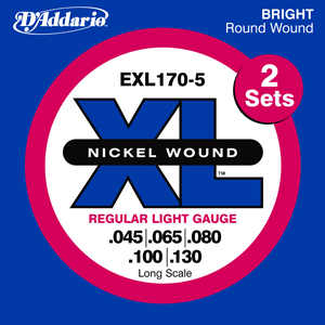 D`Addario EXL170-5TP Струны для 5-струнной бас-гитары Nickel Wound 45-130, Light (2 комплекта)