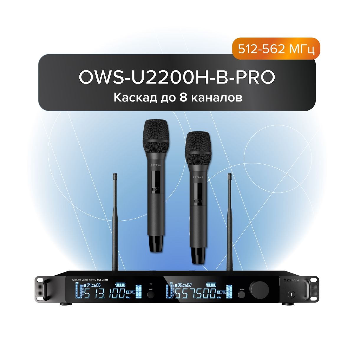 Купить Октава OWS-U2200H-B Pro вокальная радиосистема с 2-мя ручными передатчиками OWS-U1200TH (512-562 МГ можно здесь: